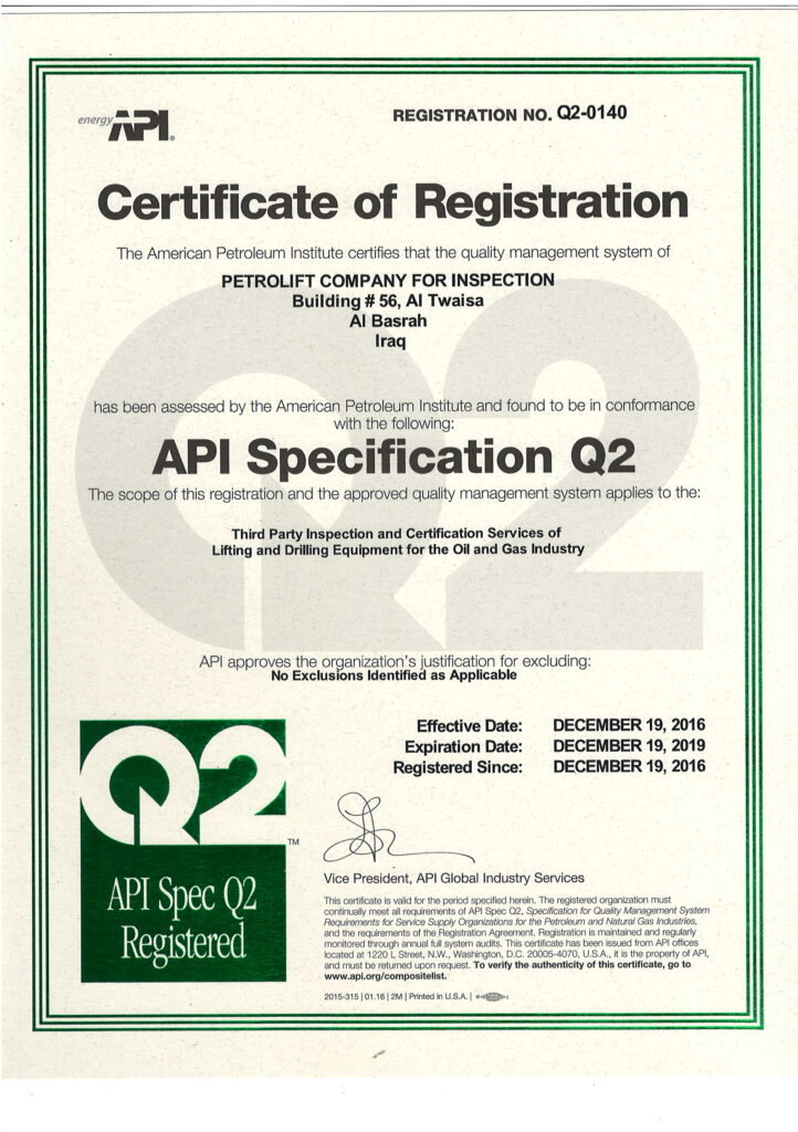 Our commitment to quality and timely providing and the continual improvement of our services whilst still ensuring that we conform to mutually agreed customer specifications is unflinching. To achieve the above goal we operate a QMS designed in line with the requirements of the ISO 9001 and API Q2 standard and continually strive to improve the efficiency and effectiveness of our quality management system. In order to achieve or even exceed these requirements, we set and constantly review our relevant objectives and targets, and use trained and competent personnel and adequate resources to deliver them. So our committed to providing a safe work environment to its employees and personnel at worksites that prevent accidents at all times.